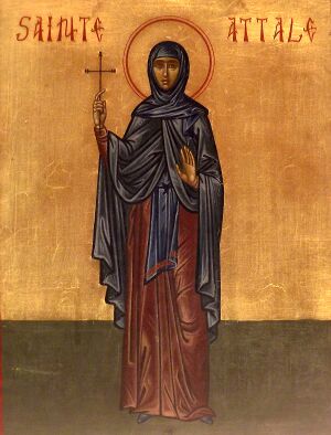 Um der Liebe zu Christus willen entsagtest du irdischen Ehren und zeigtest überfließende Liebe gegen die Armen, was dir den schönen Titel 'Mutter der Armen' eintrug. Segne deine Stadt, o heilige Attala, und jene, die liebend Dein heiliges Andenken ehren.