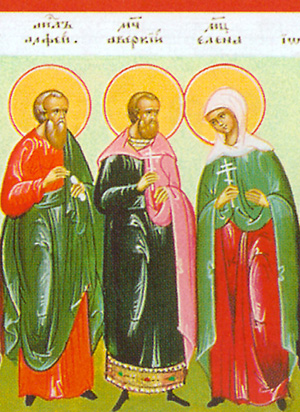 Die heiligen Märtyrer Averkios und Helena waren Geschwister, Kinder des hl. Apostel Alphaios, dessen ebenfalls am 26. Mai gedacht wird. Wegen ihren Evangeliums-Predigten wurden sie verfolgt und ermordet: der hl. Averkios, indem er nackt unter Bienen gebracht wurde; die hl. Helena wurde gesteinigt.