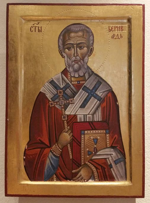 Ikone des Heiligen Bernward in der serbisch-orthodoxen Kirchengemeinde zum hl. Sava in Hannover, geschrieben von Miodrag Miša Mladenovic.