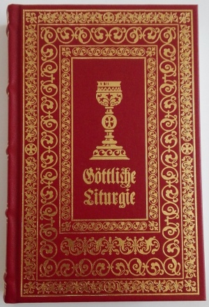 "Chrysostomosliturgie, Basileiosliturgie und Liturgie der Vorgeweihten Gaben. Mit ausführlichen Rubriken für Priester, Diakon und Altardiener, mit wissenschaftlichem Anhang. Das Werk bietet sämtliche Texte und Rubriken zum Vollzug der Göttlichen Liturgien der orthodoxen Kirche in deutscher Sprache, einschließlich der Vorbereitung der Zelebranten, der Zurüstung, der Bereitung des »Lammes« für die Vesperliturgie und den begleitenden Riten, sowie die vollständigen Abendmahlsgebete. Im wissenschaftlichen Anhang werden liturgiegeschichtliche, philologische, semantische und sprachliche Fragen erläutert. Schöne Textgrafiken runden das Werk ab. Dank seiner sprachlichen und ästhetischen Qualität wird dieses Priesterbuch am Altar, im Gottesdienst und in der Studierstube für jeden Gottliebenden, der ein tieferes Verständnis des rechtehrenden christlichen Kultus erlangen möchte, ein nicht nur notwendiger, sondern in jeder Hinsicht lehrreicher und erbaulicher Begleiter sein. Gesetzt in einer gut lesbaren, klassischen Renaissancefraktur, auf hochwertigem Hadernpapier zweifarbig gedruckt. Für Liebhaber haben wir einige Exemplare in Allgäuer Rindsleder fertigen lassen, die man schon wegen der Haptik kaum aus der Hand geben mag."