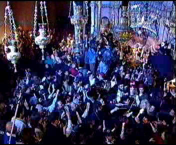 "Am Heiligen Samstag sammeln sich die Gläubigen in großen Gruppen in der Grabeskirche, da an diesem Tag Feuer vom Himmel herabkommt und die Lampen in der Kirche entzündet." So liest man in einem der vielen Osterreiseführer des Heiligen Landes.