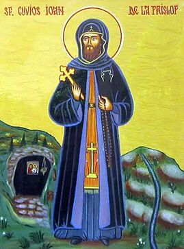 Du Liebhaber der Askese und Eiferer für das Heilige, ehrwürdiger Vater Johannes, du hast das Vergängliche verlassen und das Ewige erwählt. Du hast das Joch Christi im Kloster Prislop auf dich genommen und in der Einsiedlerhöhle Gott zusammen mit den Engeln gepriesen. Darum höre nicht auf, für unsere Seelen zu beten.