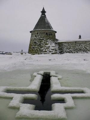 Jordan - Bezeichnung eines Eisloches am Fluss, See oder Teich, das zum Fest der Taufe Christi gemacht wird, um das Wasserweiheritual durchzuführen.