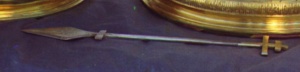 Die Lanze (kopié) ist ein flaches Messer in Form einer dreieckigen Speerspitze, die in einem hölzernen oder knöchernen Griff steckt. Damit wird das “Lamm” aus der großen Prosphore geschnitten, und es werden auch Partikel aus den anderen Prosphoren herausgenommen. Sie erinnert uns an die Lanze, mit der einer der römischen Soldaten die Seite des Erlösers durchbohrt hat, um sich von Seinem Tod am Kreuz zu überzeugen.
