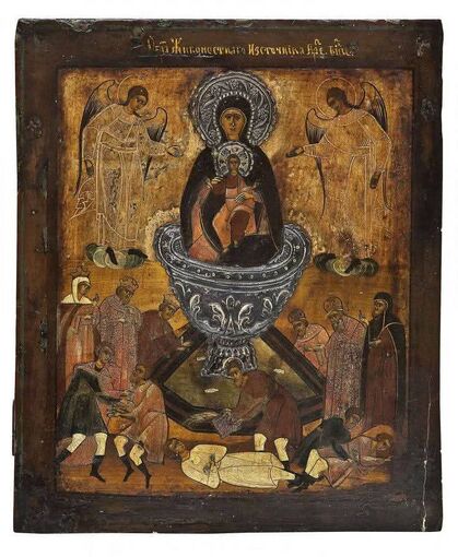 In Russland gibt es viele verehrte Ikonen des Typs “Lebenspendende Quelle”. Im Kloster von Sarov, in dem der ehrwürdige Serafim von Sarov wirkte, wurde eine Kirche zu Ehren dieser Ikone erbaut. Der Ehrwürdige schickte oft kranke Pilger zum Gebet zu dieser Ikone, und sie wurden geheilt.