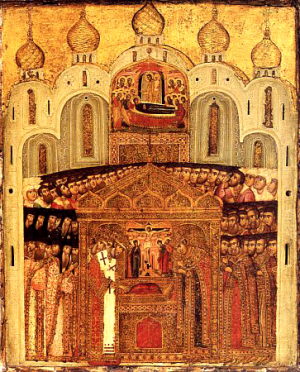 Die Überführung des ehrwürdigen Gewandes unseres Herrn Jesus Christus. Als unser Herr Jesus für die Menschheit litt, gab es in den Rängen der römischen Armee in Jerusalem einen Georgier namens Elioz aus der Stadt Mts’chet. Seine Mutter hatte von Christus gehört und glaubte an Ihn in ihrem Herzen. Als sie sah, das ihr Sohn in die Armee in Palästina kam, riet sie ihm, nichts gegen Christus zu tun. Als der Herr ans Kreuz genagelt wurde, erreichte das Geräusch des Hammerschlags das Ohr von Elioz’ Mutter in der Stadt Mts’chet. Als sie das Geräusch hörte, rief sie: „Weh mir, das ich nicht vor der Zeit starb. Der Tod hätte mich vor diesem schrecklichen Geräusch gerettet!“ Als sie das gesagt hatte, fiel sie tot nieder. Elioz war in jenem Augenblick unter dem Kreuz und warf mit den anderen Soldaten das Los um das Gewand Christi. Er gewann es und brachte es nach Mts’chet und gab es seiner Schwester Sidonia als Geschenk. Sie, die gehört hatte über den Tod des Herrn und das ihr Bruder teilgenommen hatte am Vergießen unschuldigen Bluts, fiel tot zu Boden, wobei sie das Gewand des Herrn fest in ihren Händen hielt. Keiner konnte es ihr entreißen, sondern man war gezwungen, das Gewand zusammen mit ihr zu begraben. Eine Zeder wuchs auf ihrem Grab, die süßes heilendes Öl absonderte. Nach einiger Zeit fiel die Zeder, und die Stelle geriet in Vergessenheit. Nach ihrem Gebet fand die hl. Nina diese Stelle mit Hilfe einer Feuersäule. Der getaufte König Mirian errichtete eine Kirche dort, die er den Heiligen Aposteln weihte. Im Jahr 1625 nahm Schah Abbas dieses Gewand und sandte es als Geschenk nach Moskau an Fürst Michail Feodorovič und Patriach Filaret. Das Gewand wurde in der Kathedrale des Entschlafens der Allheiligen Jungfrau in Moskau niedergelegt.