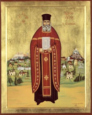 Der heilige Nikolaos wurde im Jahre 1851 auf der griechischen Insel Naxos geboren. Der zukünftige Vater Nikolaus heiratete mit 17 Jahren und wurde Vater eines Kindes. Als seine Frau jedoch schon nach wenigen Ehejahren verstarb, verbrachte er den Rest seines Leben in Ehelosigkeit und wandte sich ganz dem Dienst der heiligen Kirche zu. Am 28. Juli 1879 wurde er dann zum Diakon und im Jahre 1884 zum Priester geweiht. Die kommenden fünfzig Jahre war sein ganzes Leben der Feier der Gottesdienste gewidmet. Täglich feierte er die Göttliche Liturgie, den Orthros und die Vesper. An allen Festtagen feierte er die Nachtwache (Agrypnia). Dies war zu jener Zeit sehr ungewöhnlich, strebte doch die staatliche Verwaltung in Griechenland danach, das kirchliche orthodoxe Leben den in Westeuropa üblichen Gepflogenheiten so weit wie möglich anzupassen und deshalb das gottesdienstliche Leben in den Pfarrgemeinden von den bisherigen Gepflogenheiten, die sich eng an das Gottesdienstleben der Klöster anlehnten, zu entfremden. Er versäumte in den kommenden Jahren niemals die Feier der Heiligen Liturgie. Die meiste Zeit des Tages verbrachte er in der kleinen Athener Kirche des heiligen Johannes. Als er dort zu dienen begann, umfasste die Pfarrei nur acht Familien. Der heilige Nikolaos wies niemals eine Bitte um Fürbitte bei Gott zurück. Stets waren die Taschen seines Rjassons mit Gedenkzettel unzähliger um seine Fürbitte und um sein Gebet bittender Menschen gefüllt. Diese las der heilige Papas dann sorgfältig während der Proskomidie und bei den entsprechenden Fürbitten der Heiligen Liturgie. Die Feier der Göttlichen Liturgie dauerte bei diesem Heiligen besonders lang. Ruhig und ohne Eile zelebrierte er den heiligen Dienst. Er begann die Liturgie in der Regel morgens um 8 Uhr und sie dauerte in der Regel bis um 2 oder 3 Uhr nachmittags. Wenn er die Heilige Liturgie nicht in seiner eigenen Pfarrkirche feiern konnte, so begab er sich in andere Kirchen Athens um dort in der Liturgie mitzudienen. Papas Nikolaos wurde von den Menschen, die ihn persönlich kannten als bescheiden, freundlich und in sich zurückgezogen beschrieben. In Athen war stadtbekannt, dass der Heilige alles was er an Gaben erhielt, sofort an die Armen weitergab. Er war kein gebildeter Mann, doch er war das Beispiel eines von den Gnadengaben des Heiligen Geistes erleuchteten Priesters; ein Beispiel großer Heiligkeit und tiefer Demut. Er entschlief am 2. März 1932 in Athen. Seine Reliquien können in der erneuerten Kirche des Heiligen Johannes des Jägers verehrt werden. Im Jahre 1992 wurde er verherrlicht.