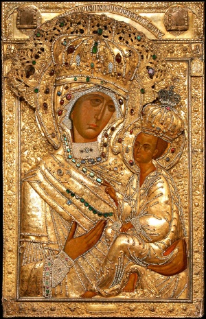 Manche Ikonen, vor allem die spät-byzantinischen, wurden vor ihrem ersten Anstrich mit einem Riza versehen. Nur die Bereiche, die nicht vom Riza bedeckt waren, wurden gemalt.
