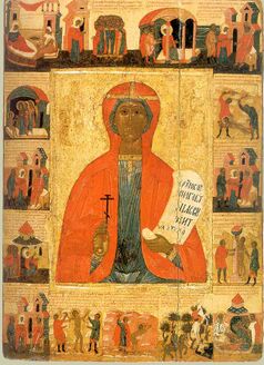 Die Heilige Großmärtyrerin Paraskeva lebte im 3. Jahrhundert in Ikonium (heute Konya in der Türkei) im Römischen Reich. Ihre Eltern waren Christen und ehrten den Freitag hoch als den Tag, an dem unser Herr Jesus Christus am Kreuz litt. Als ihre Tochter an diesem Tag geboren wurde, nannten sie sie deshalb „Paraskeva“, das griechische Wort für „Freitag“. [Ebenso ist ihr Beiname „Pyatnitsa” russisch für „Freitag“.]